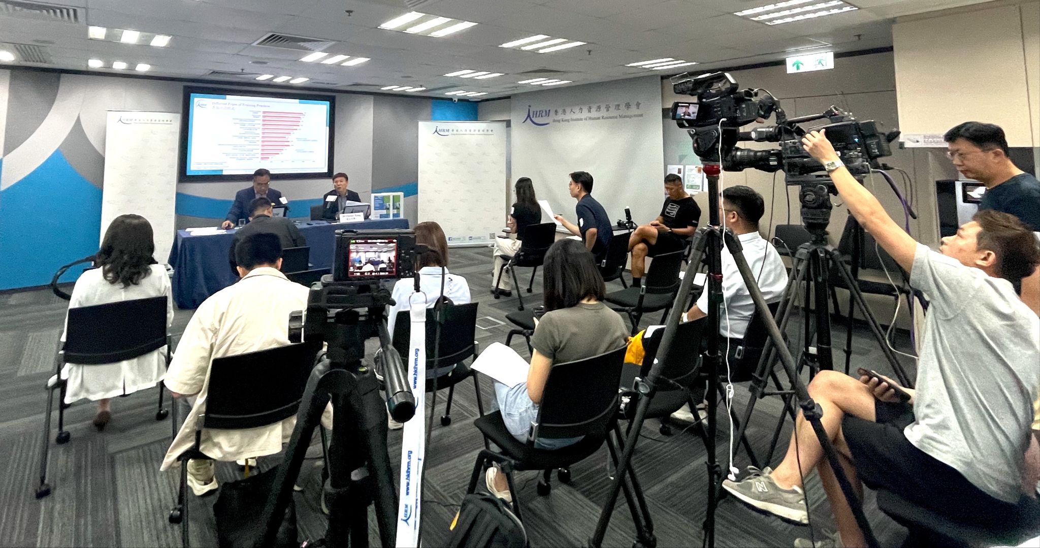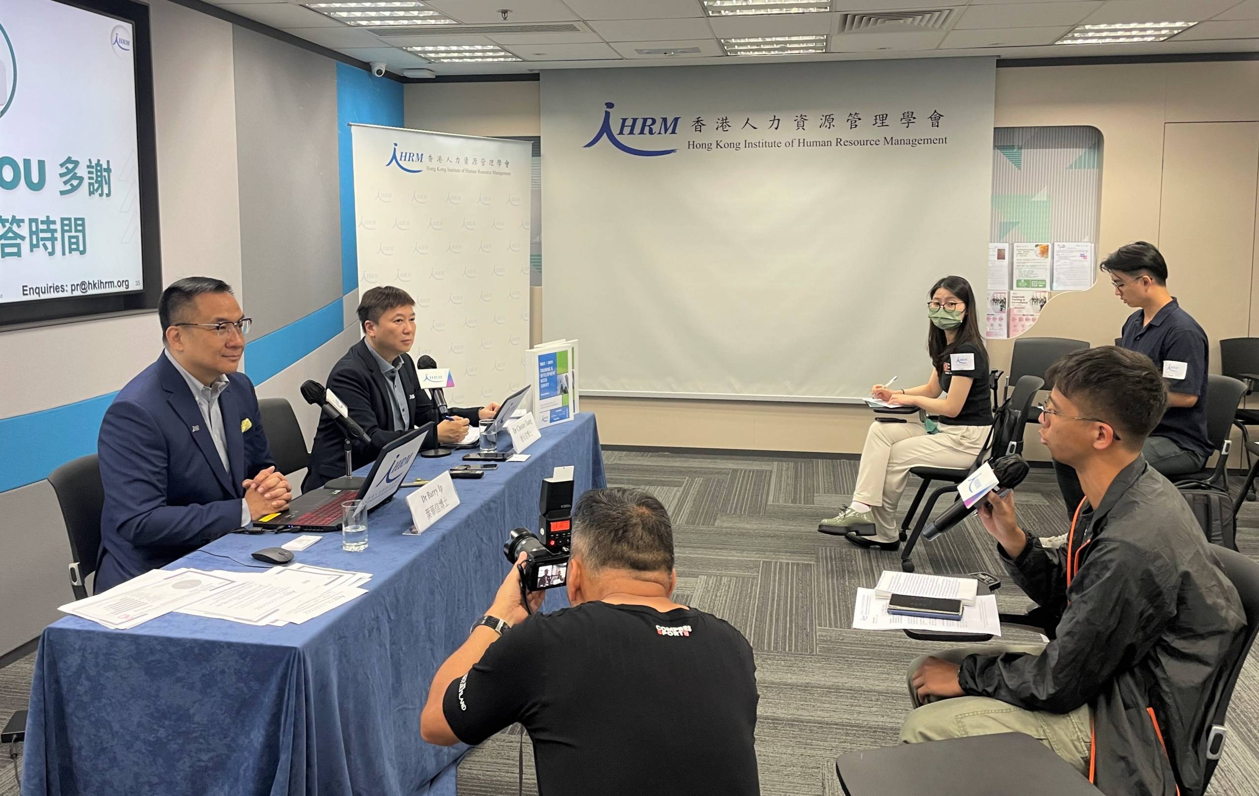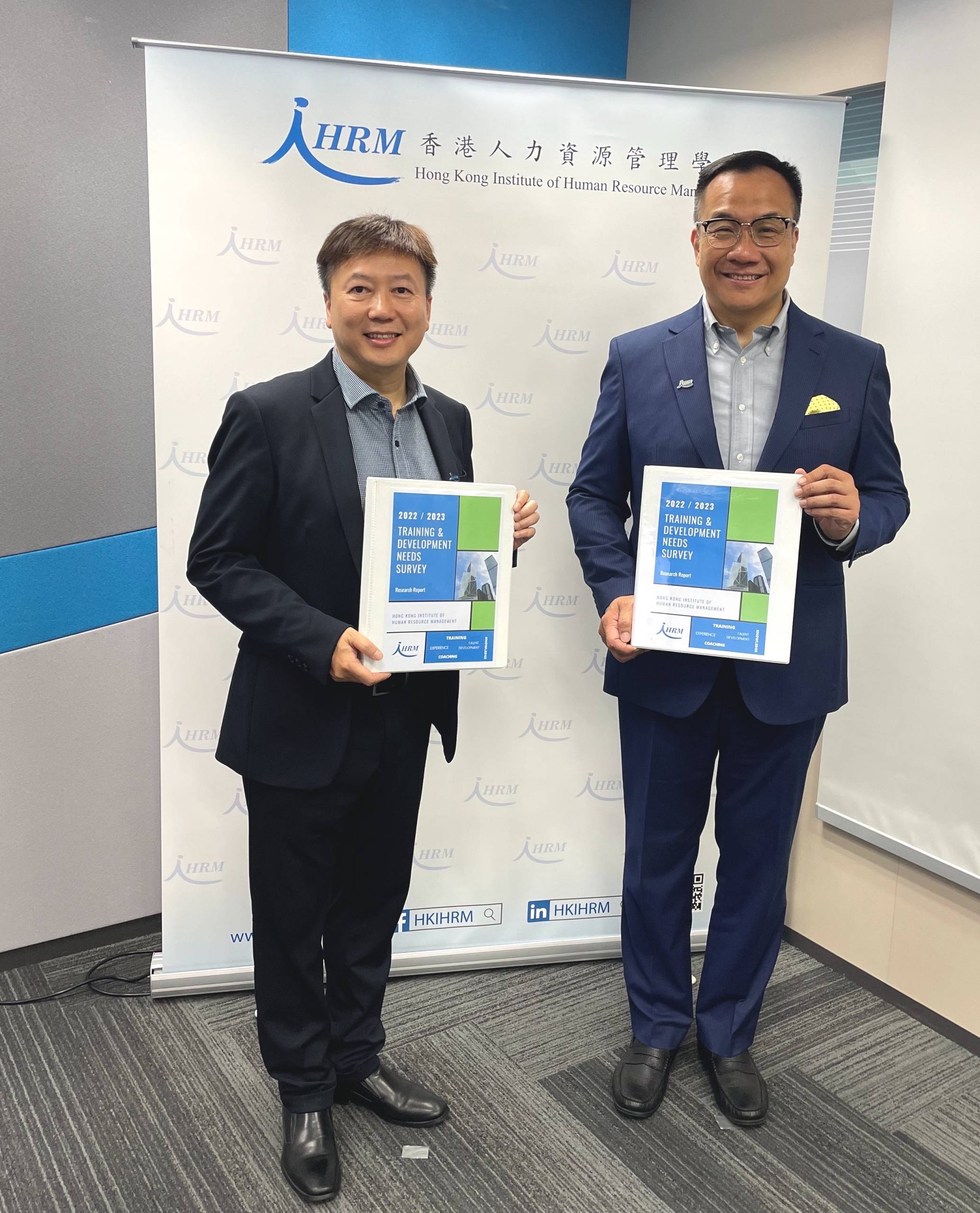 Chester Tsang, Executive Council Member of HKIHRM and Co-Chair of L&D Committee and Barry Ip, Co-Chair of L&D Committee presented the key findings of the 2022/2023 Training and Development Needs Survey to the press.