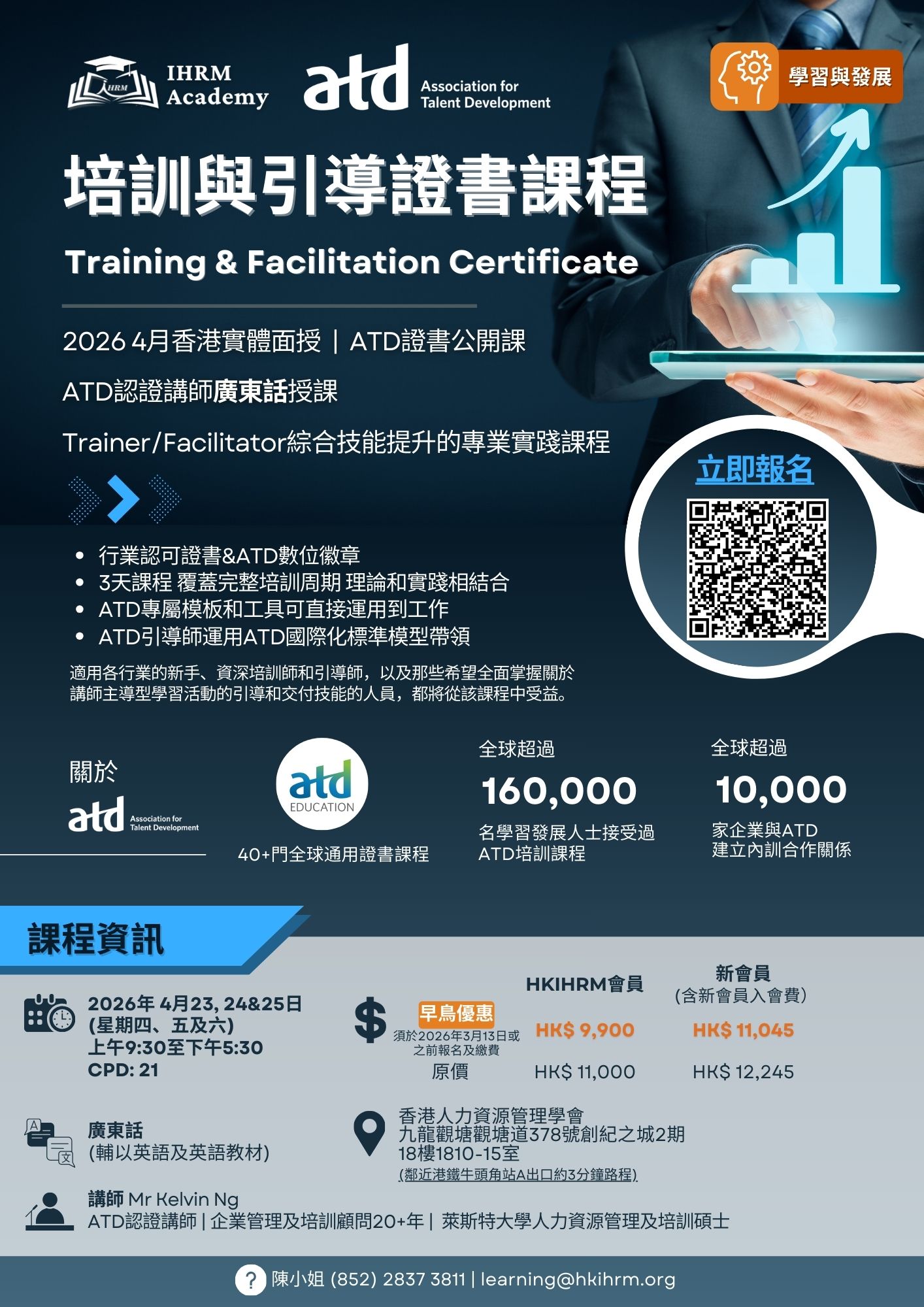 Venue: HKIHRM, Units 1810-15, 18/F, Millennium City 2, 378 Kwun Tong Road, Kwun Tong, Kowloon, Hong Kong (3-minute walk from Ngau Tau Kok MTR station exit A)