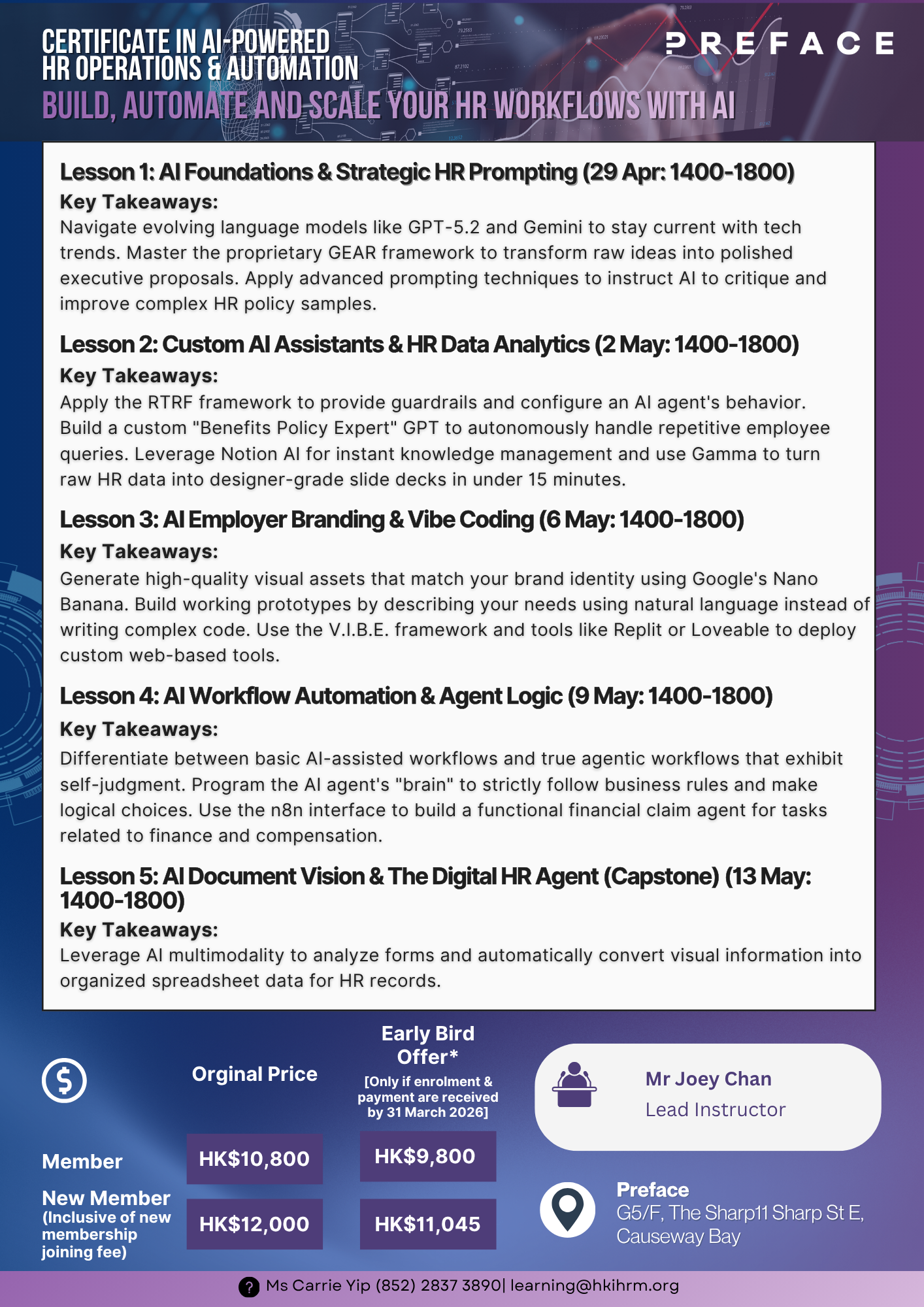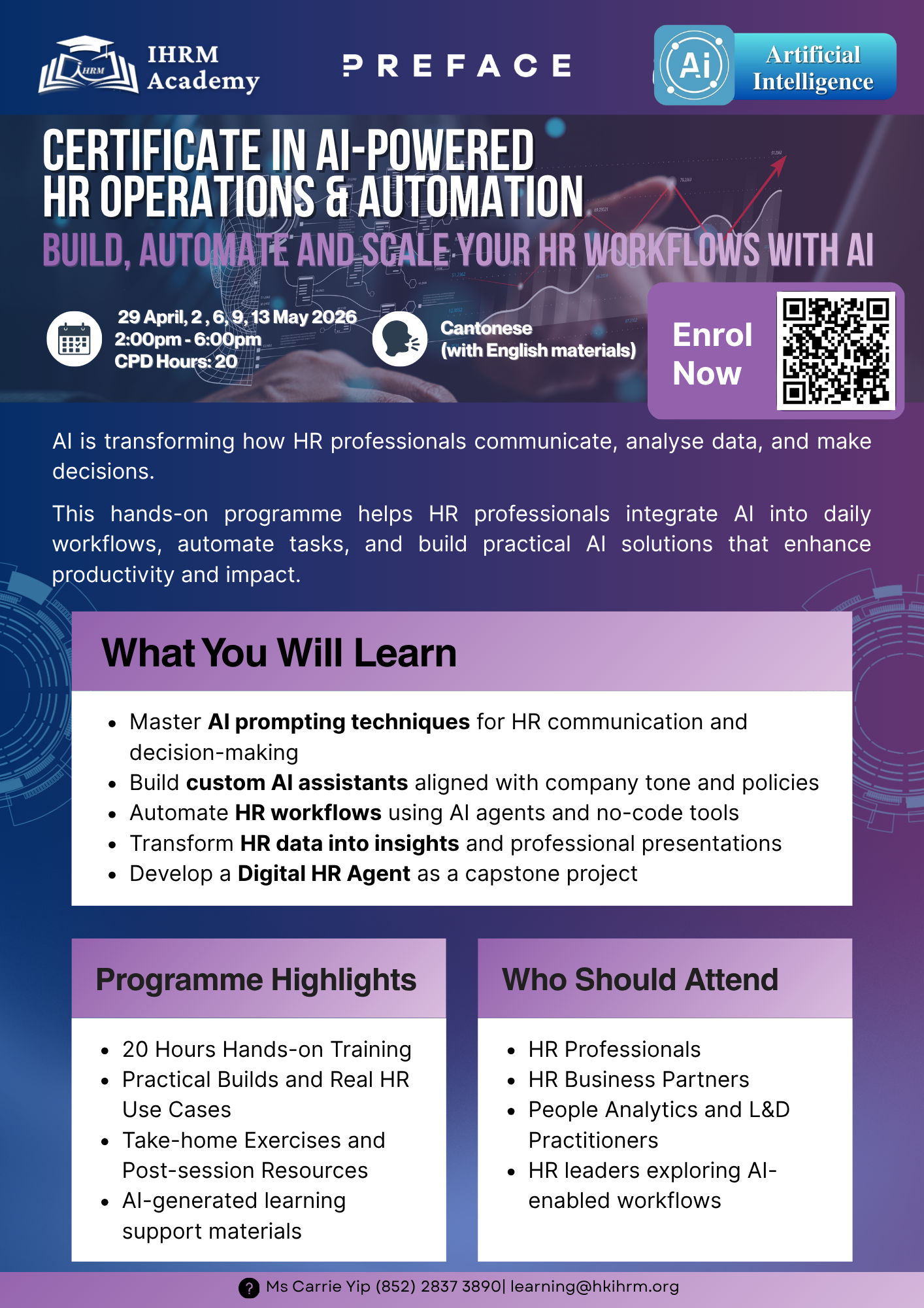 香港人力資源管理學會:+(852) 2837 3814,membership@hkihrm.org