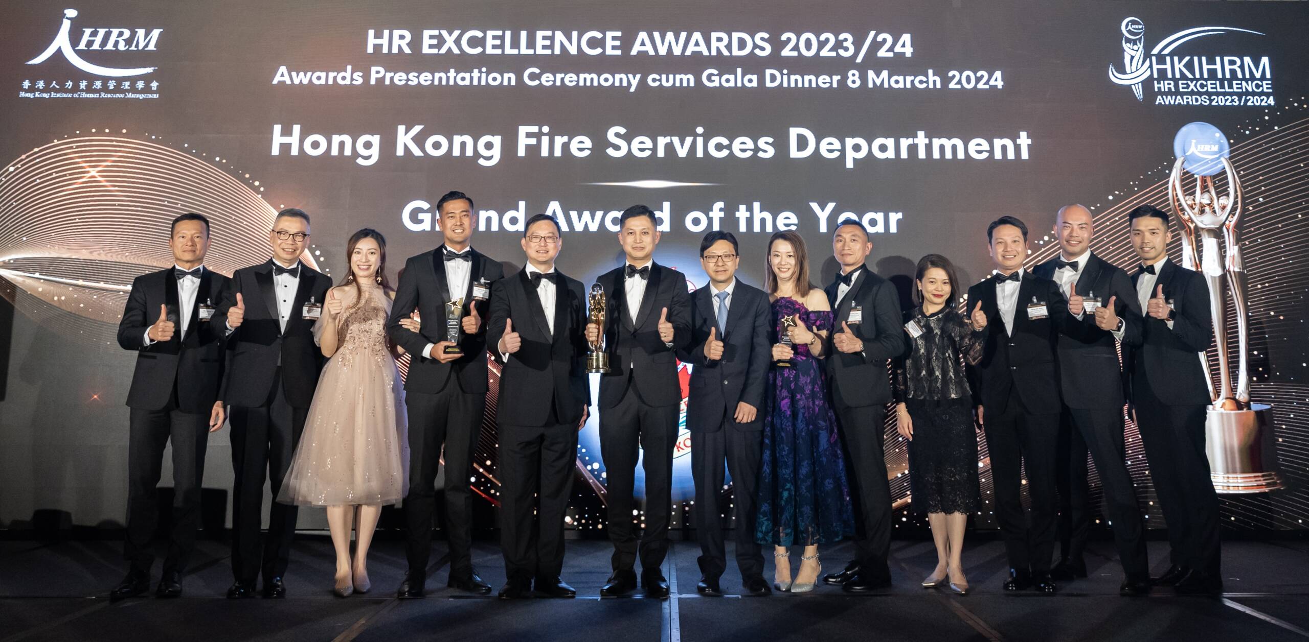 The Hong Kong Fire Services Department (FSD) has earned esteemed recognition at the HKIHRM HR Excellence Awards 2023/24, receiving the “Grand Award of the Year”, “Grand Award of Employee Wellness”, and “Grand Award of Talent Management”, acknowledging their outstanding talent management and employee wellness programme.