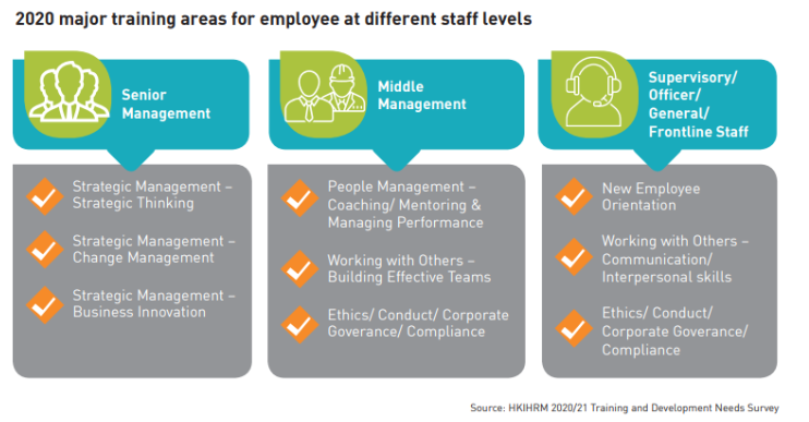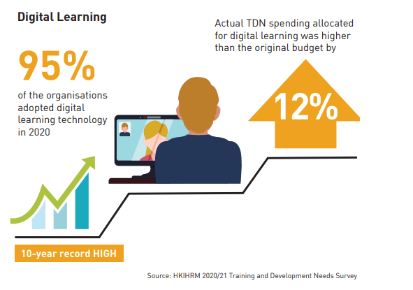 • As companies recover from COVID-19, the HKIHRM 2020/21 Training and Development Needs Survey shows that while training budgets have declined, the use of digital training and development platforms have thrived.