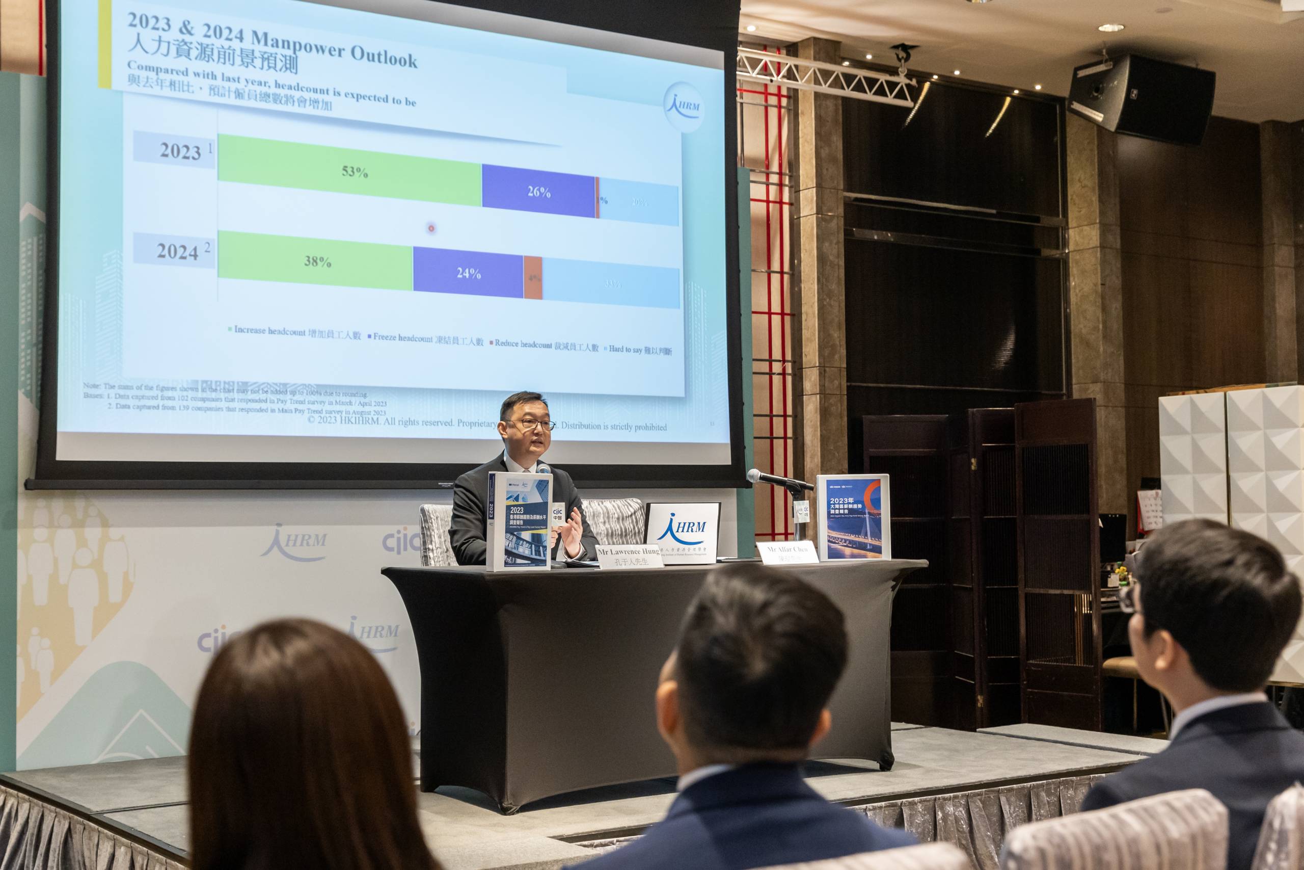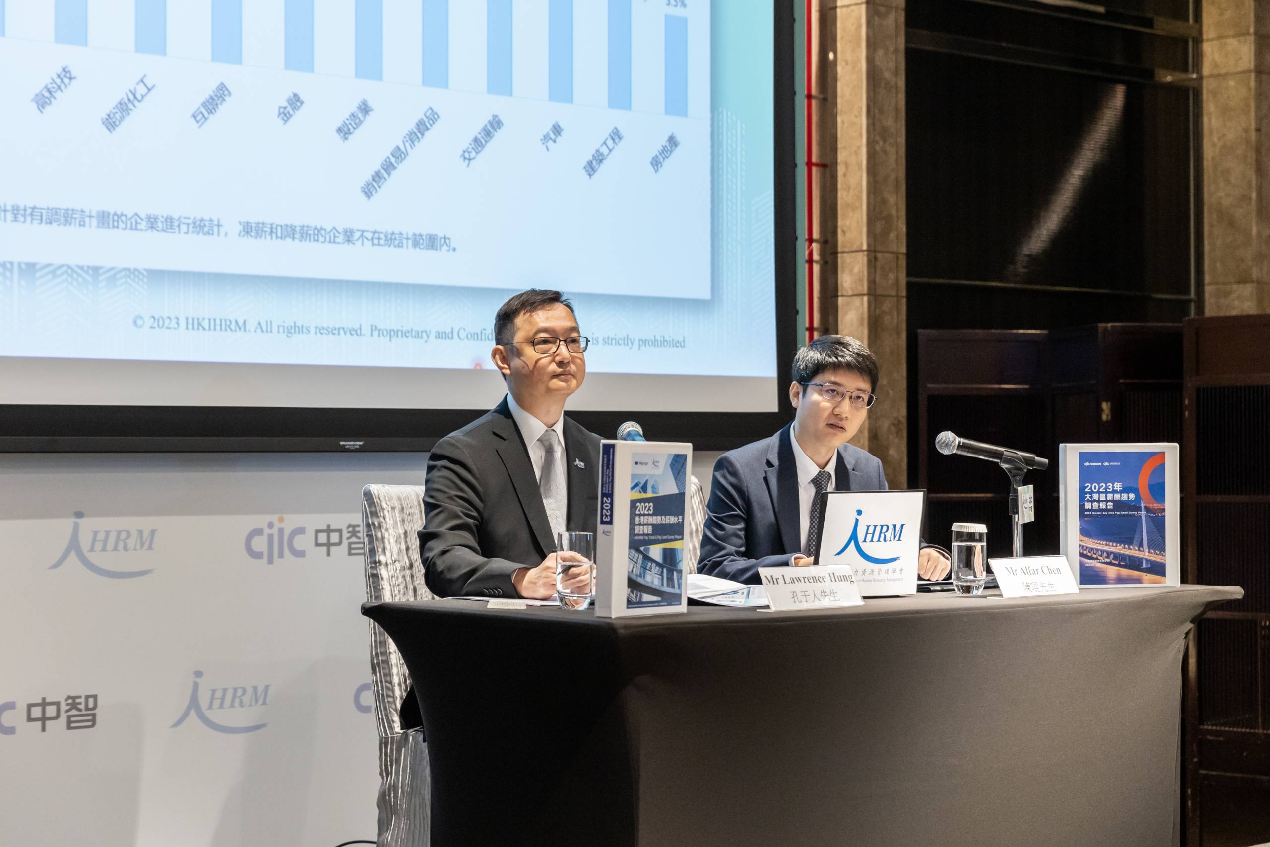 Lawrence Hung, President of HKIHRM and Alfar chen, Vice General Manager of CIIC Hong Kong and Macau, delivered the survey findings for their respective regions. They offered their invaluable insights and projected the pay trends for the upcoming year, aiming to empower employers with the necessary information to formulate effective strategies for talent recruitment and retention.