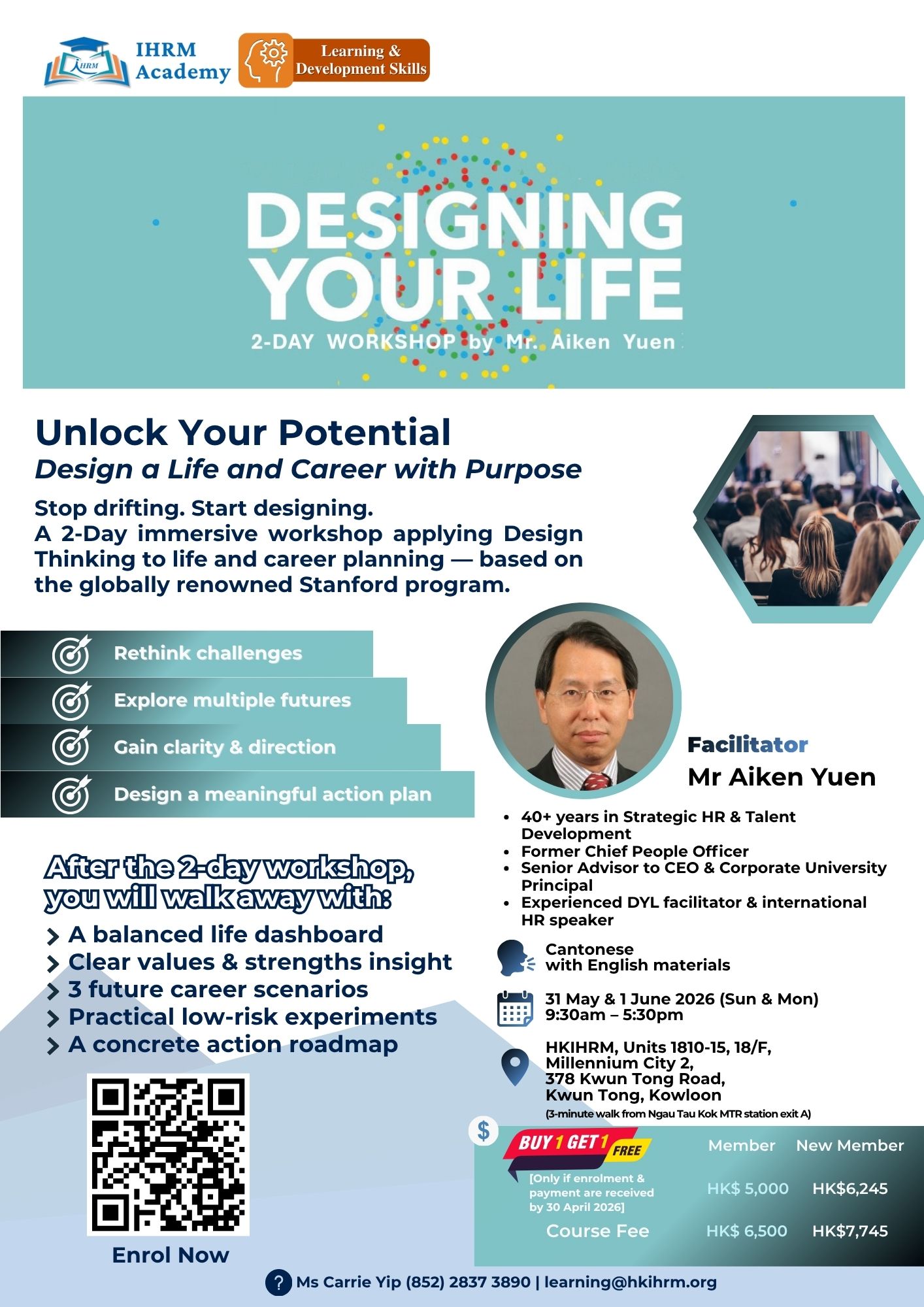 Designing Your Life (DYL) is a practical, hands-on workshop based on Design Thinking and Positive Psychology principles, adapted for life and career planning. The program empowers participants to rethink challenges, explore multiple futures, and design a roadmap toward a joyful, meaningful, and successful life.